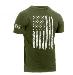 white vertical US Flag graphic and a reversed flag on the right sleeve. The US