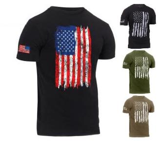 smaller sleeves for a more athletic fit. The distressed US Flag T-Shirt displays a