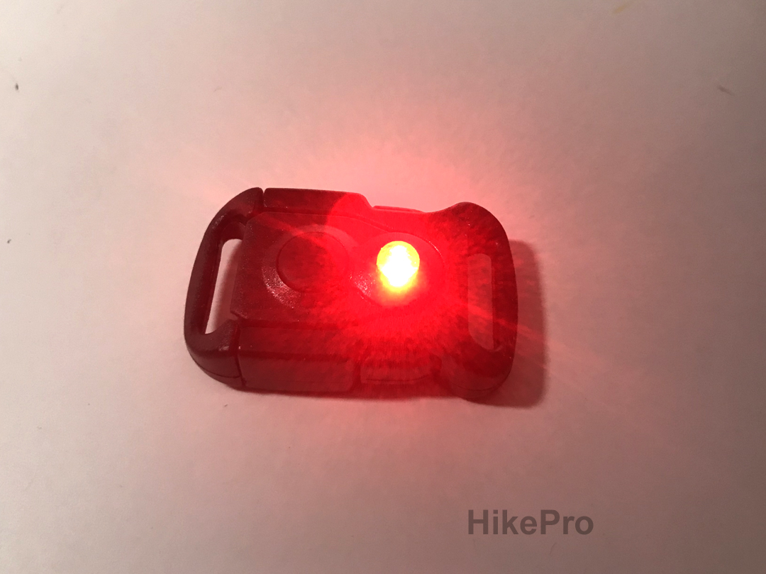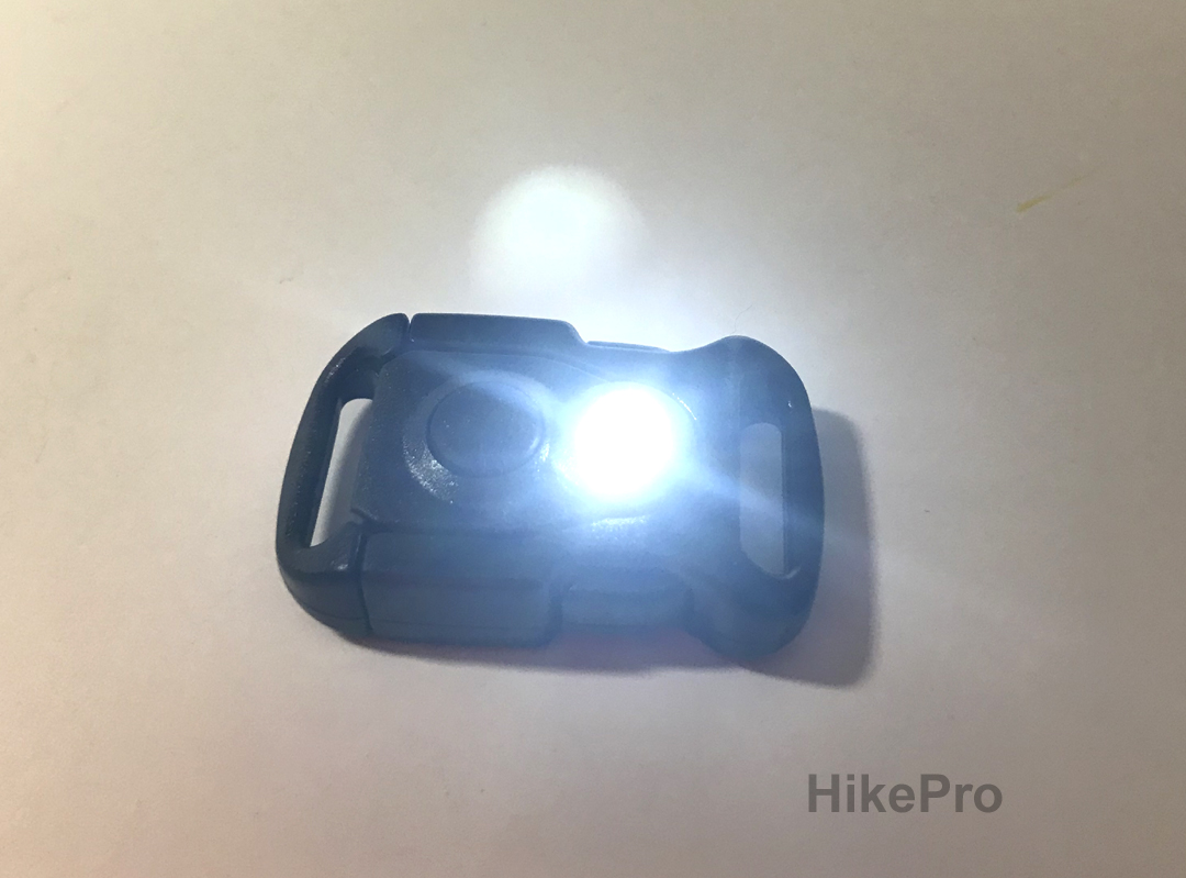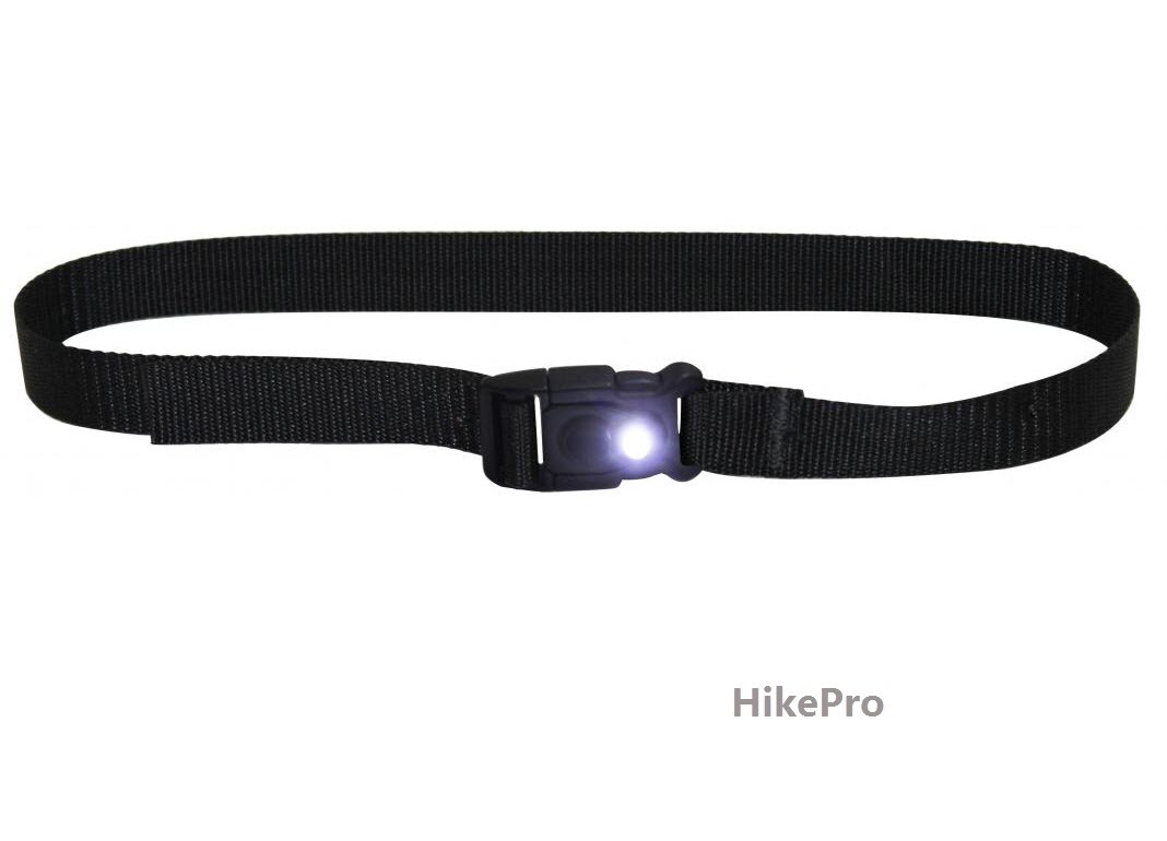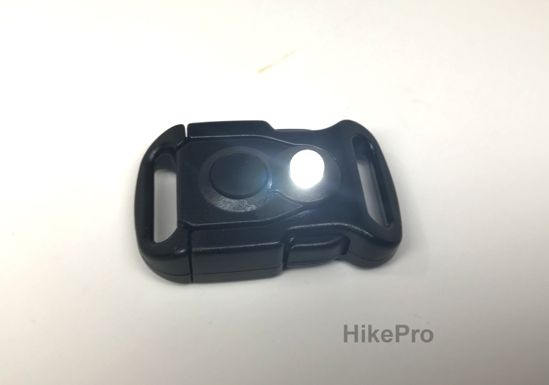 Built Into the buckle: Powerfull LED light with strobe effect