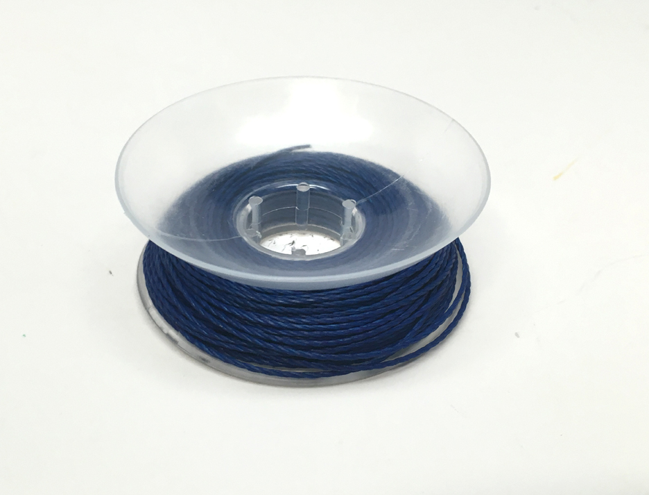 Cord color: dark blue. Cord length: 60 ft. Cord diameter: 0.036". Spool dimensions: 2.5" diameter x 0.5" height.