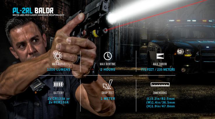 PL-2RL Baldr is the much-anticipated red laser version of the groundbreaking 1,200 lumen PL-2 Valkyrie.